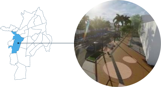 La intervención tiene un enfoque Urbano – Paisajístico, en el cual se mejorarán las condiciones de materialidad, luminosidad y mobiliario de los parques, andenes, las vías y la ciclo infraestructura, además, se recuperarán las zonas verdes con la siembra de individuos forestales.